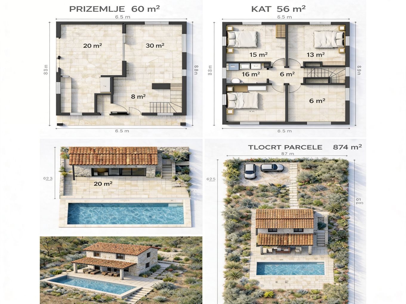 Za ovo zemljište izrađene su i vizualizacije idejnog rješenja, koje su priložene uz oglas. Njihova svrha je kupcu približiti potencijal ove lokacije i ponuditi inspiraciju za mogući izgled budućeg objekta, u skladu s ambijentom i prirodom koja ga okružuje.